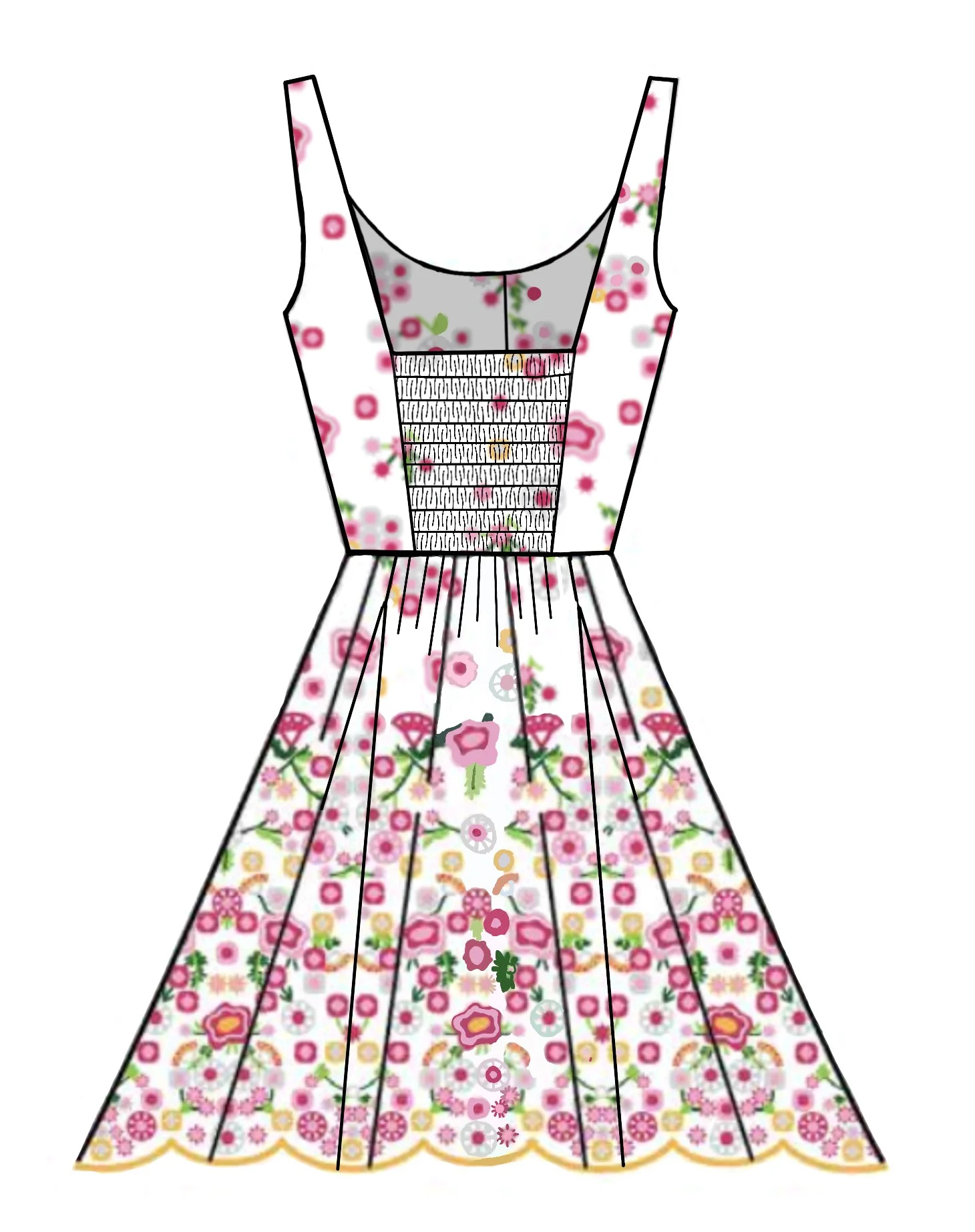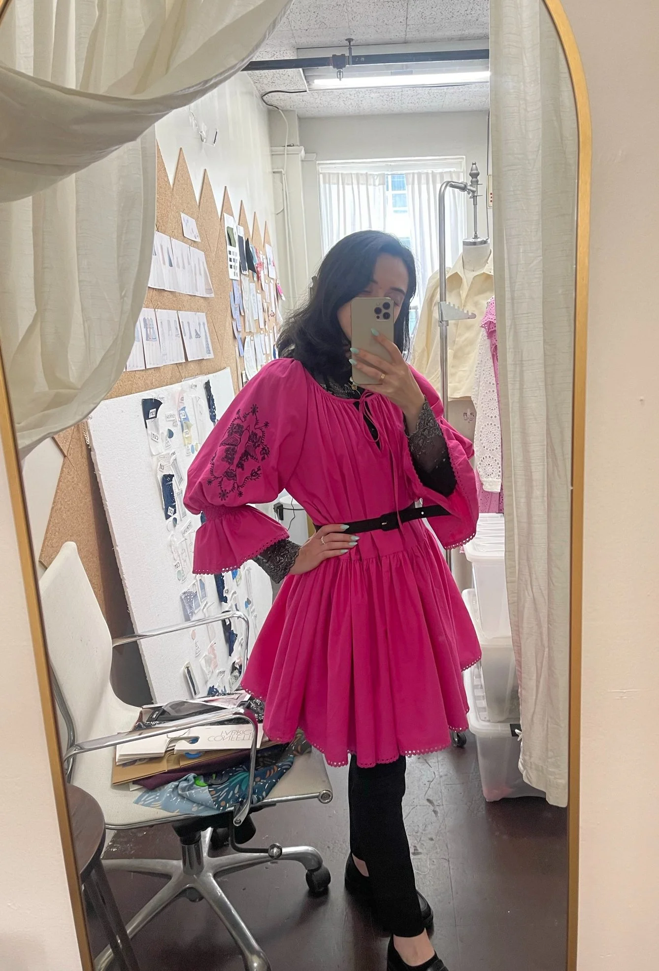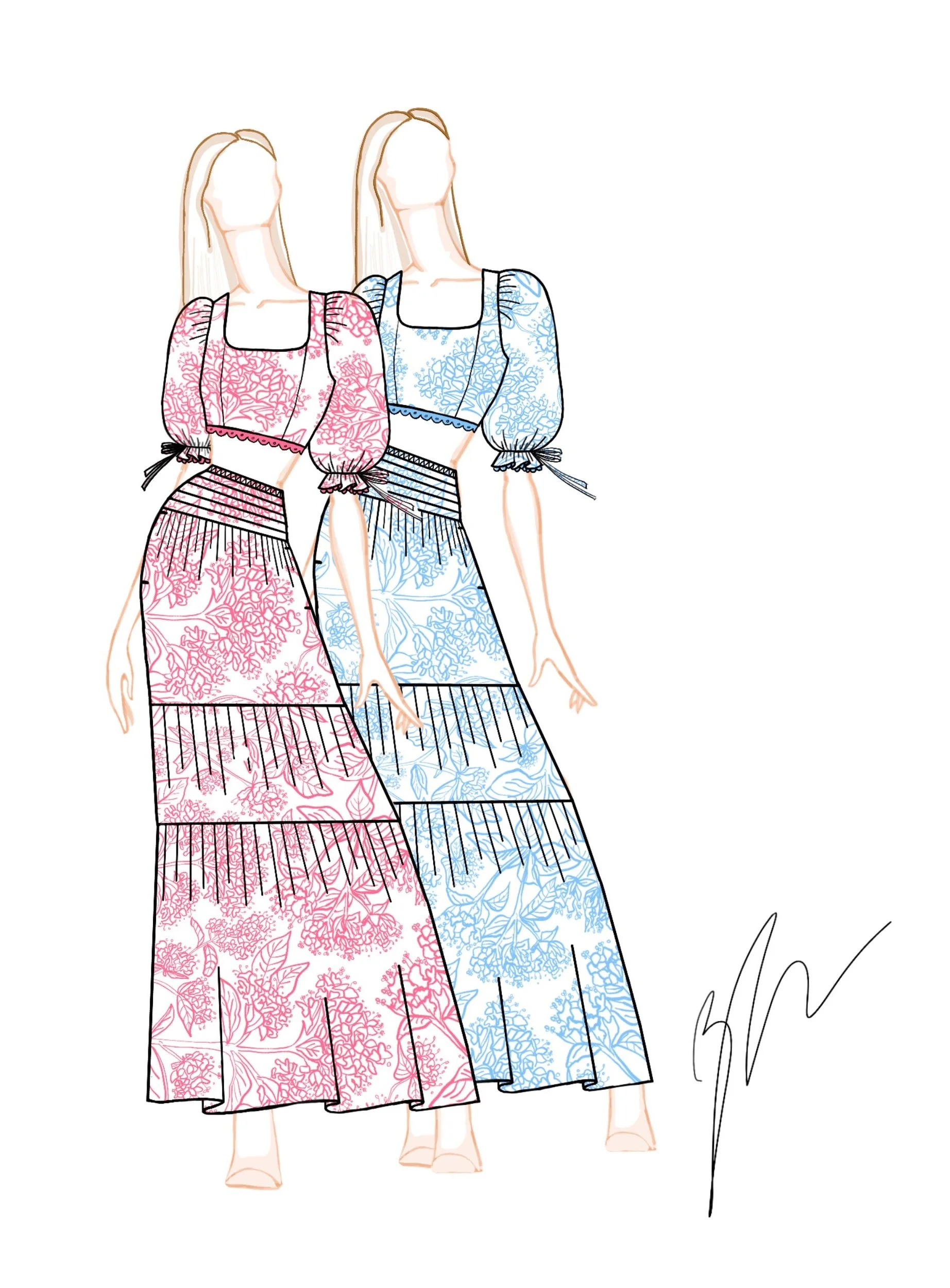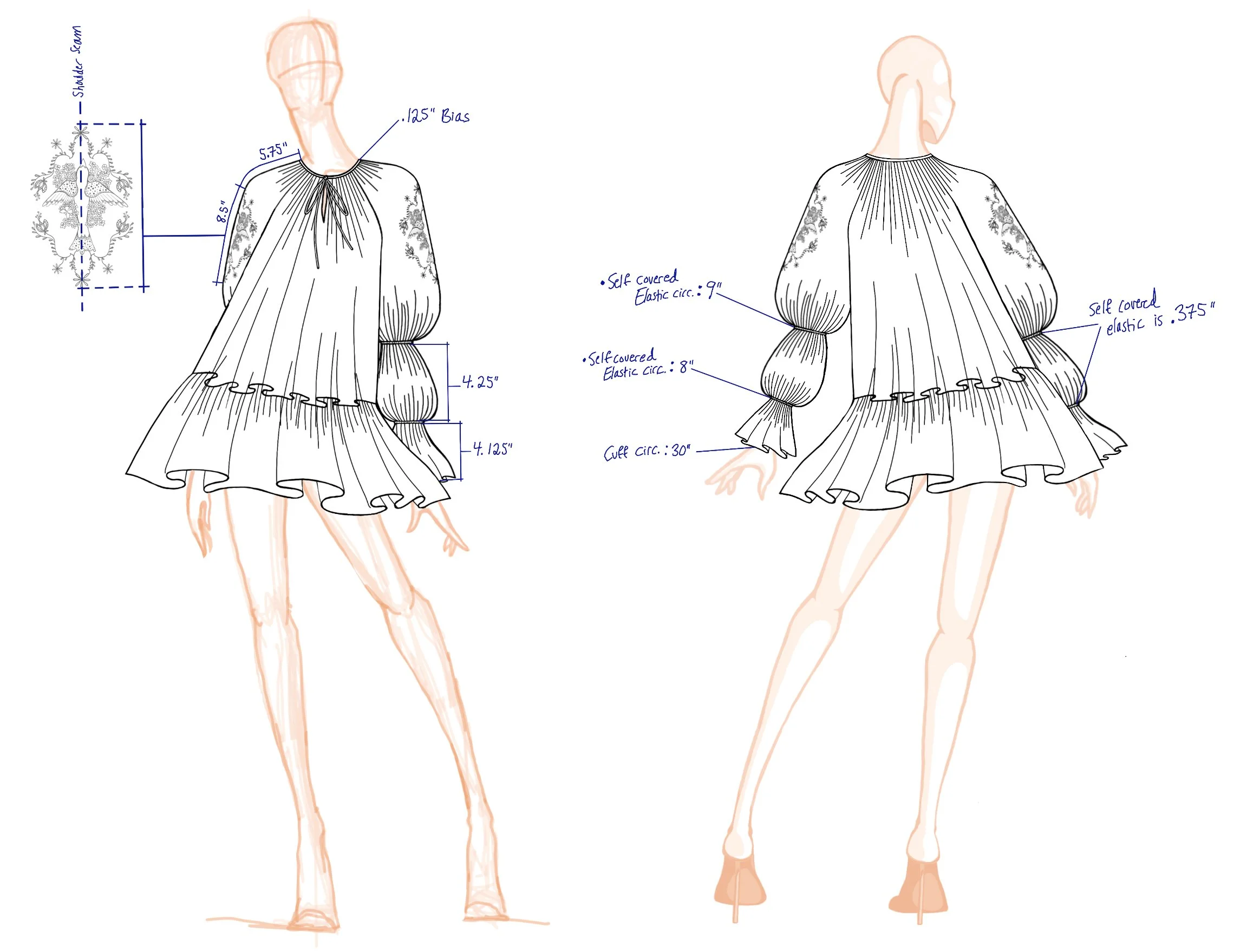 Inspired by a last-minute trip to Marrakech, Morocco. Marrakech’s exotic gardens are home to a variety of highly saturated plants like Bougainvillea flowers and pomegranate trees. I took a bike ride through the Medina where vendors sold textiles, dried flowers and spices, which directly influenced the colors and embroideries of this collection